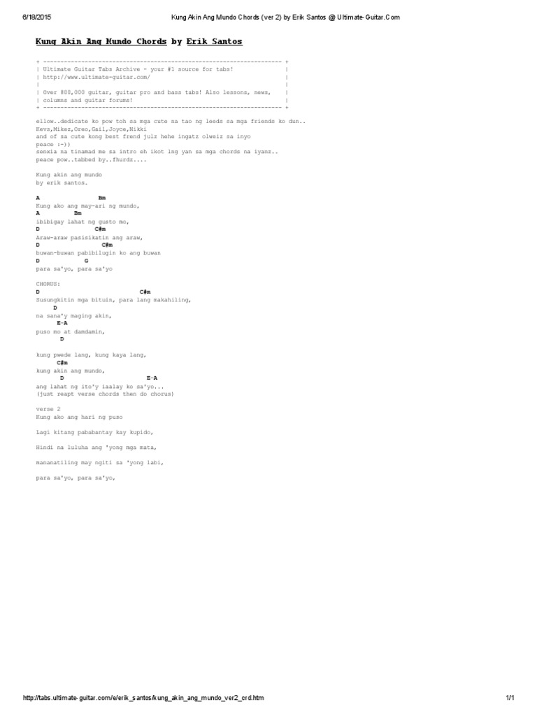 Kung Akin Ang Mundo Chords Ver 2 By Erik Santos At Ultimate Guitar Pdf
